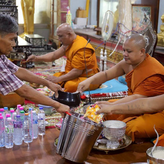เวลา ๐๗.๐๐ น. พุทธศาสนิกชนร่วมทำบุญตักบาตร ข้าวสาร อาหารแห้งแด่พระสงฆ์ผู้อยู่จำพรรษาวัดมารวิชัย เพื่อเสริมสร้างบุญกุศลและความเป็นสิริมงคลแก่ชีวิตและเพื่อสืบสานประเพณีอันดีงาม ณ วัดมารวิชัย ต.บางนมโค อ.เสนา จ.พระนครศรีอยุธยา
